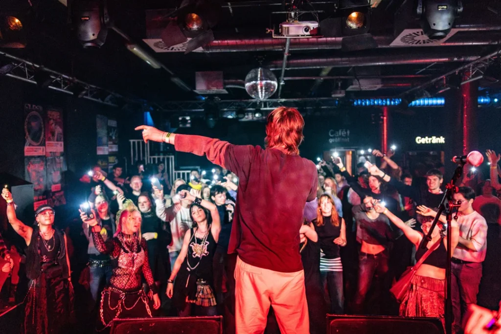 twiceasmad: „eine siebenköpfige Indie-Pop-Band aus München mit Brass und Rap, die keine halben Sachen macht. Alles kommt direkt von der Bühne: kein Playback, nur das, was im Moment passiert. Stilistisch bewegen sie sich irgendwo zwischen Bilderbuch, SEEED und Von Wegen Lisbeth: Schmutzige E-Gitarren, wuchtige Bläser, bissiger Rap und Synthesizer-Action. Daraus entsteht ein dicker, ehrlicher Deutschpop-Sound mit klarer Live-DNA.“
